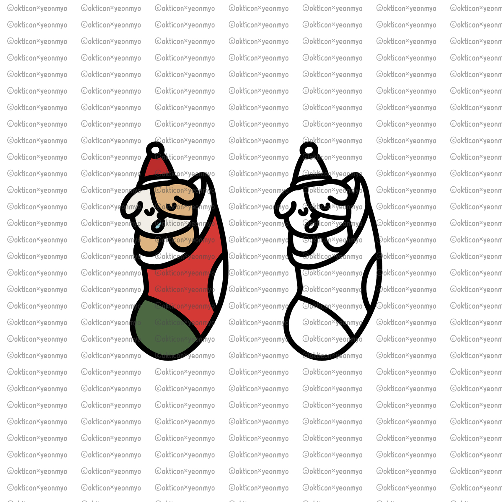 크리스마스 산타양말 속 강아지 아이콘 개별