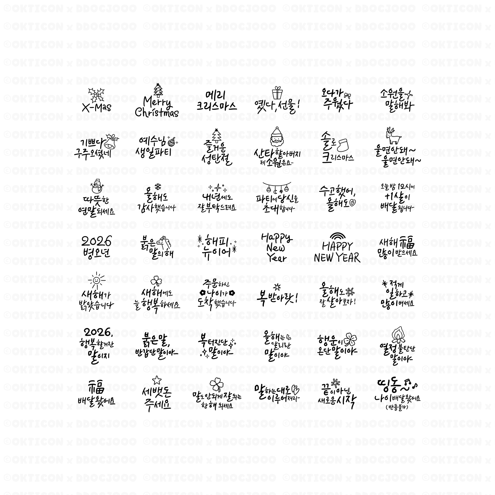 | * 개별 : png / jpg 파일 캘리그라피 42종 +데코 아이콘 32종 (컬러+라인) |